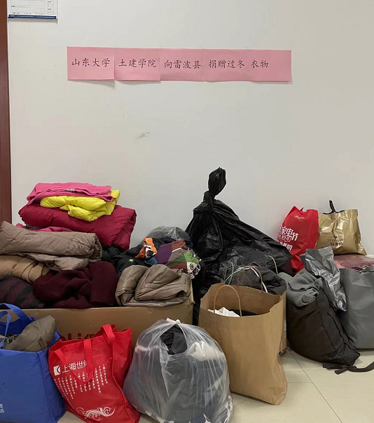 为了响应并落实国家“精准扶贫”政策,为贫困山区群众奉献山大爱心,落实党建工作具体化,2020年12月1日至15日,Beat365官方网站党委、院工会以及实验中心党支部、工程力学党支部为四川省雷波县贫困群众进行了过冬衣物募捐活动。