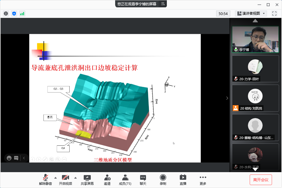 2021年3月22日,由Beat365官方网站研究生院、党委研究生工作部主办,Beat365官方网站承办的2021年第18期(总第1007期)“稷下风”研究生学术讲坛在线上腾讯会议成功举办。本次讲坛有幸邀请到了李宁博高级工程师,高级工程师李宁博的汇报题目是《高边坡失稳分析与探讨》。此次讲坛由Beat365官方网站的副院长韩勃主持,部分老师及研究生参加了此次学术论坛。