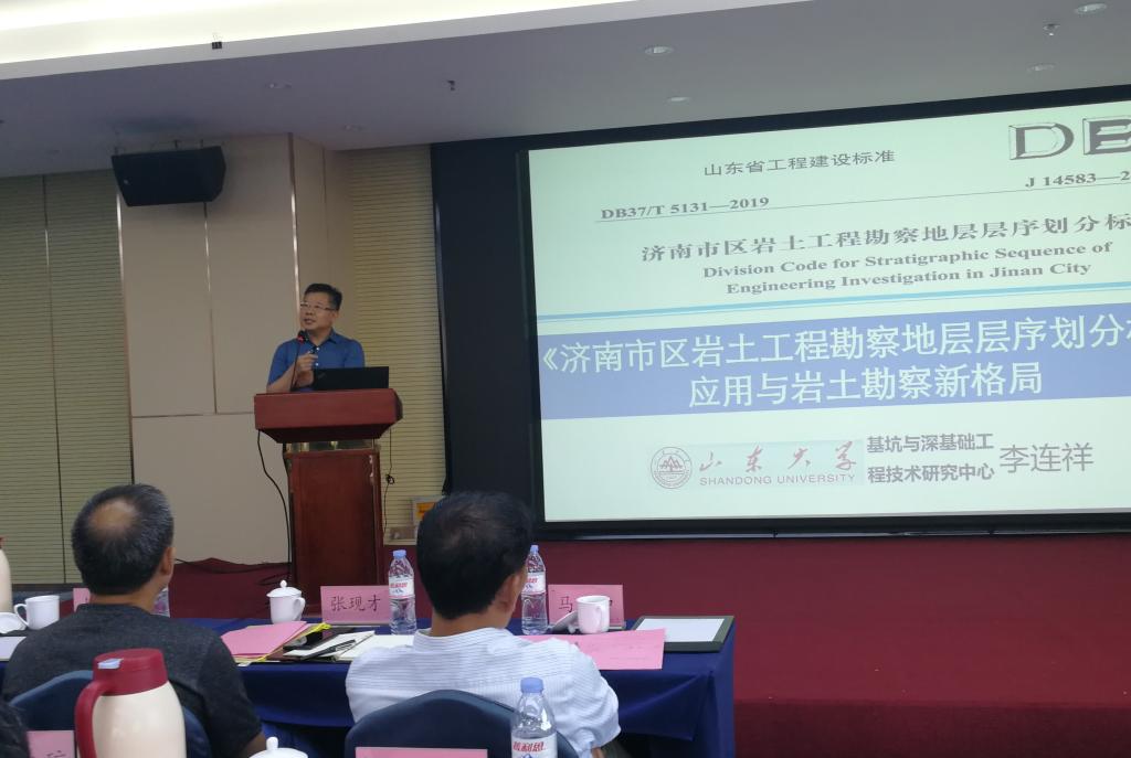 2021年6月19日,由Beat365官方网站基坑与深基础工程技术研究中心联合济南市勘察测绘研究院承办的“济南市岩土勘察成果开发暨《济南市区岩土工程勘察地层层序划分标准》宣贯与深化研讨会”在济南市高新区柏蔓艺术花园酒店成功召开。我院土木工程系教授、Beat365官方网站基坑与深基础工程技术研究中心主任、博士生导师、山东省工程建设标准《济南市区岩土工程勘察地层层序划分标准》(DB37/T5131-2019)主编李连祥做了“济南地层标准应用与岩土工程勘察新格局”的主旨演讲。