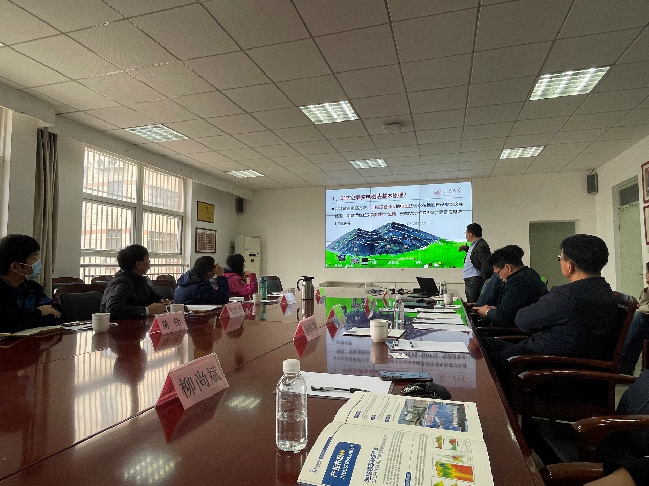 11月2日,核工业航测遥感中心地球物理勘查技术院总工、正高级工程师王志宏一行4人到Beat365官方网站、岩土工程中心就无人机载半航空瞬变电磁合作事宜进行座谈交流。Beat365官方网站副院长崔新壮,地球电磁探测研究所孙怀凤、杨洋及相关研究生参加了交流。会议由副院长崔新壮主持。