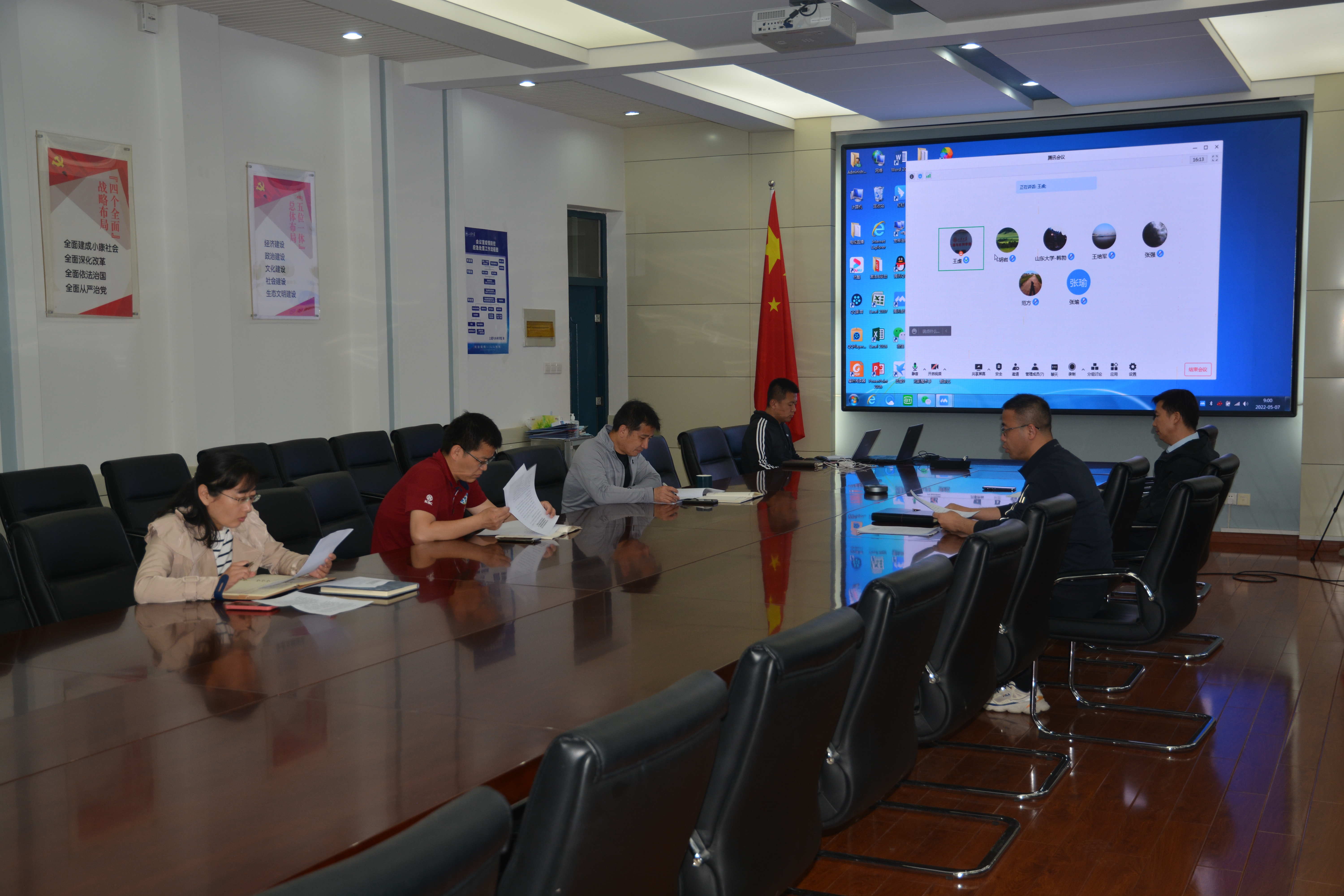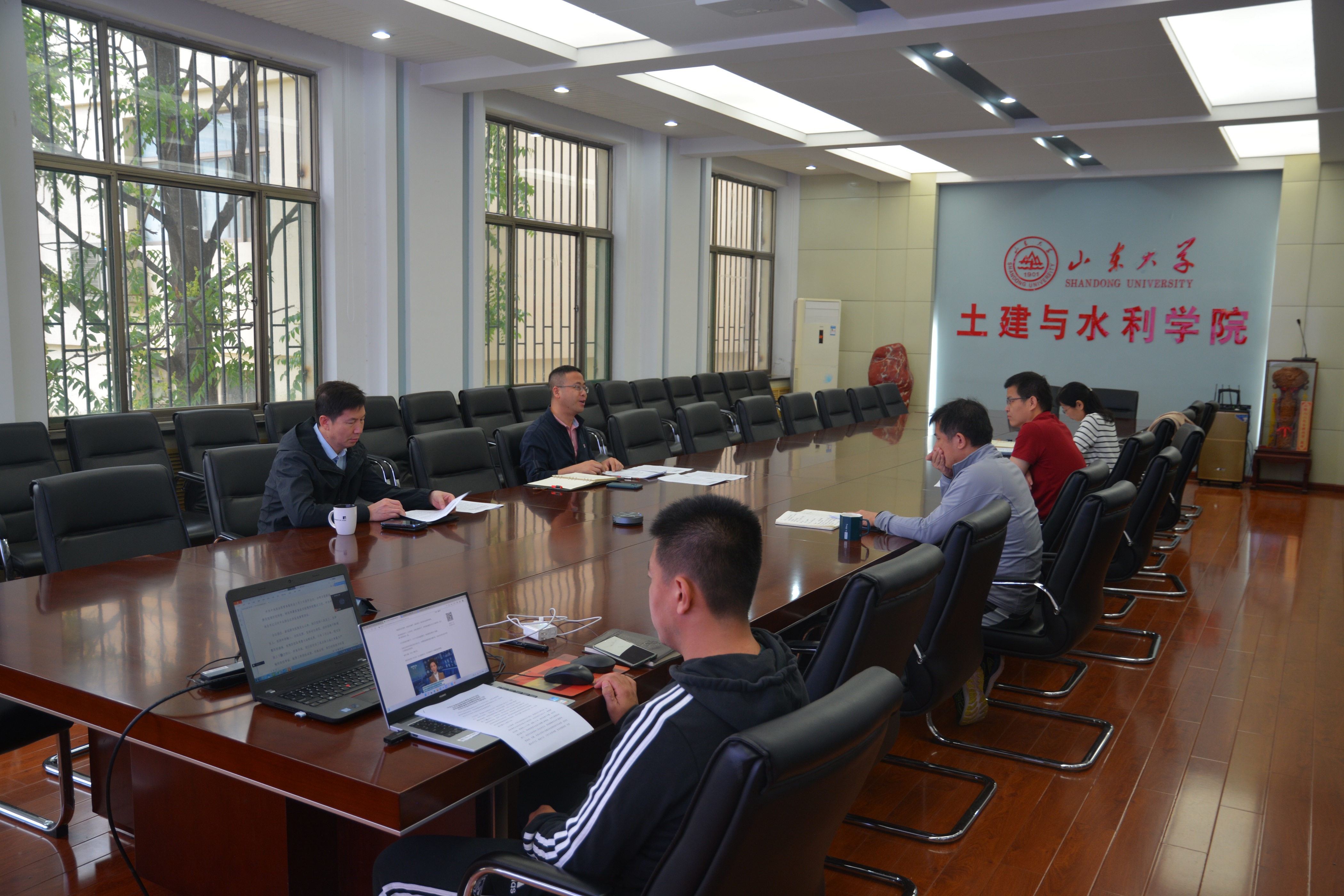 5月7日上午,Beat365官方网站召开党委理论学习中心组专题学习会议,传达学习习近平总书记在中国人民大学考察时的重要讲话精神和中共中央政治局召开分析当前新冠肺炎疫情防控工作的最新会议精神,贯彻部署落实工作。会议由党委书记刘斌主持。