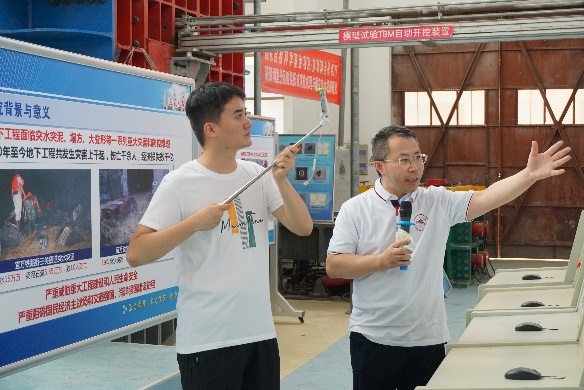 为加深营员对我院科研平台的了解,学院为营员安排了实验室云参观活动。张强勇和李尧在大型地下洞室群教育部工程研究中心、隧道与地下工程灾害防控实验室,以线上直播的形式带领同学们学习参观。张强勇为同学们介绍了国家973项目《隧道施工超前地质预报综合物理模型试验科学平台》、国家973项目课题《油气储库群运营中的灾变风险评估与调控机制》、国防科工局重大项目课题《高放废物深埋地质处置地下实验室大型地质力学模型验证试验》等模型试验研究成果,李尧则为同学们具体讲解了隧道超前地质预报物理模型试验系统的研究进展。张强勇老师和李尧老师用形象生动的语言,专业的讲解,通过镜头给参营的同学们一种身临其境的学习感受,得到了同学们积极的回应。