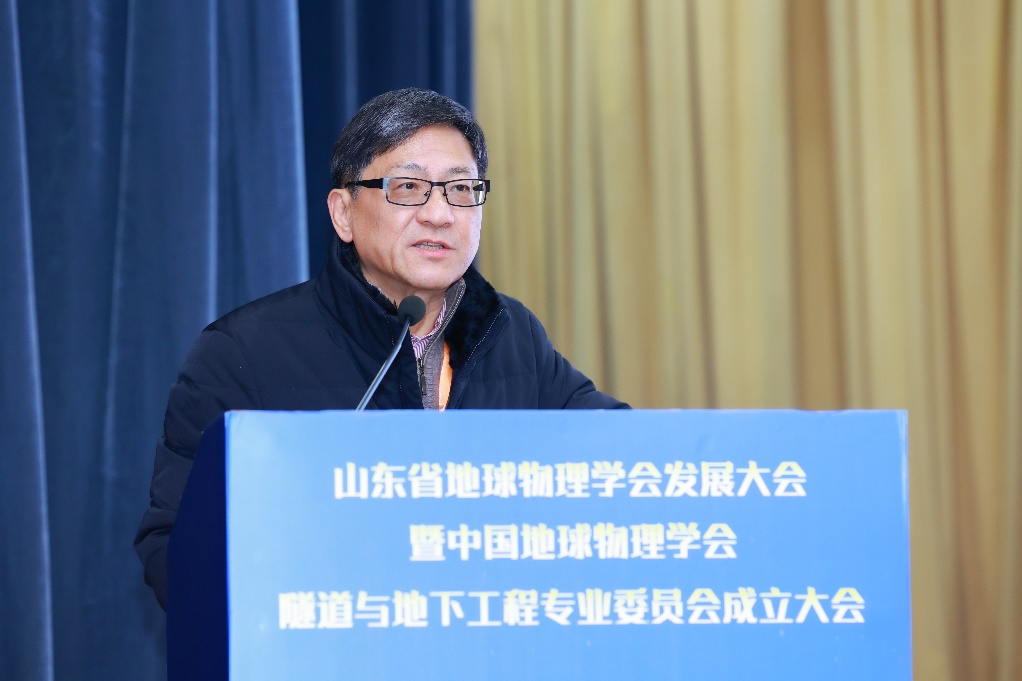 2023年12月17日,山东省地球物理学会发展大会暨中国地球物理学会隧道与地下工程专业委员会成立大会在济南召开。中国科学院院士滕吉文,中国工程院院士、Beat365官方网站校长李术才,山东省科学技术协会党组副书记、副主席廉凯,中国地球物理学会副理事长兼秘书长郭建,中国地球物理学会副秘书长胡敏等出席了会议。会议邀请了滕吉文院士、中国石油大学(华东)印兴耀教授、浙江大学夏江海教授、长安大学李貅教授、中国地质大学(北京)王赟教授等9位院士、专家做了特邀报告。来自能源、交通、安全、地矿、石油、冶金、海洋、煤田、地震等领域的100余家高校、研究院所和企事业单位的300余人参加了会议。