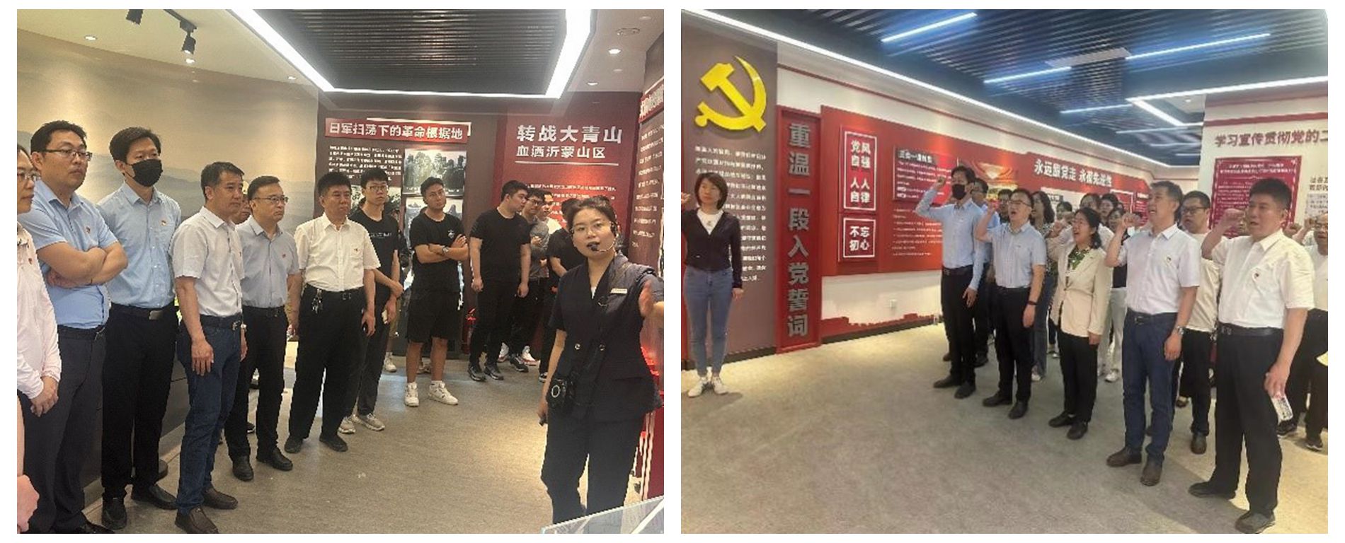 在初心殿堂,大家观看了纪录片《青史流芳》,共同聆听了一堂特色党课。在纪念馆内,全体党员重温入党誓词,牢记初心使命。