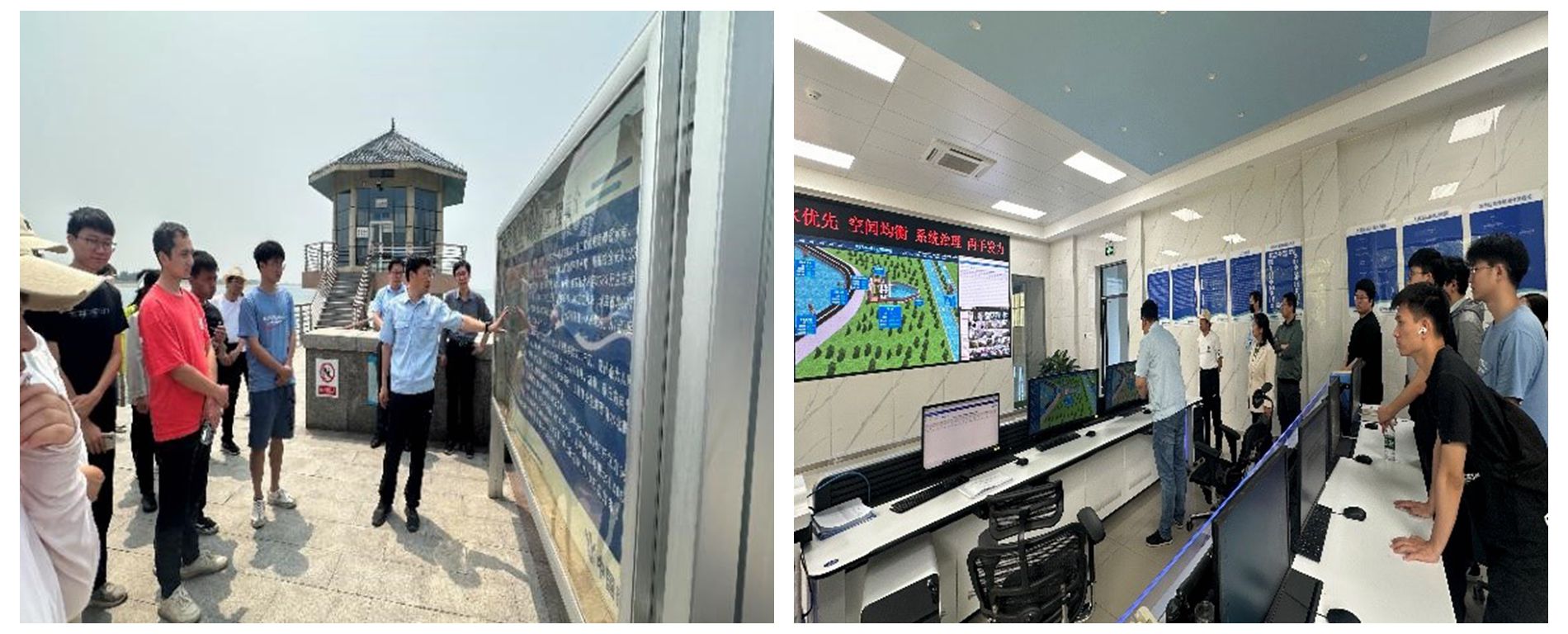 随后,全体师生在南水北调东线山东干线有限责任公司相关领导的带领下前往东湖水库管理处进行毕业实习。东湖水库是南水北调东线一期胶东输水干线工程的重要调蓄水库,在管理人员的引导下,同学们先后对东湖水库引水渠、机房、调度大厅、创新工作室等进行了参观学习。苗兴皓老师向同学们介绍了防渗、护坡等相关专业知识在东湖水库中的应用。同学们也积极提问,与水库管理人员进行了深入交流。