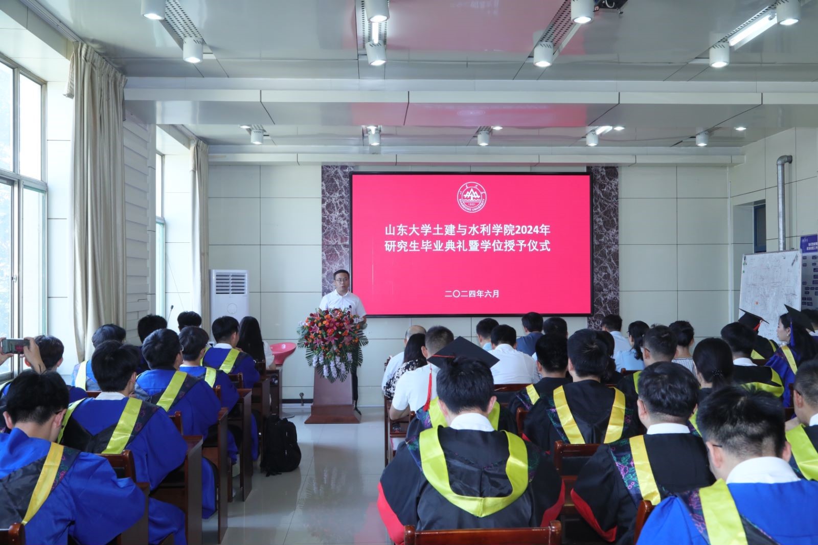 夏日晴光映未来,毕业风华启新征。6月25日,Beat365官方网站2024年研究生毕业典礼暨学位授予仪式在千佛山校区水利楼世茂讲堂举行。Beat365官方网站院长张庆松,党委书记刘斌,副院长王培军,党委副书记辛帅,院学位委员会委员,各学科教师代表以及2024届全体毕业生参加典礼。