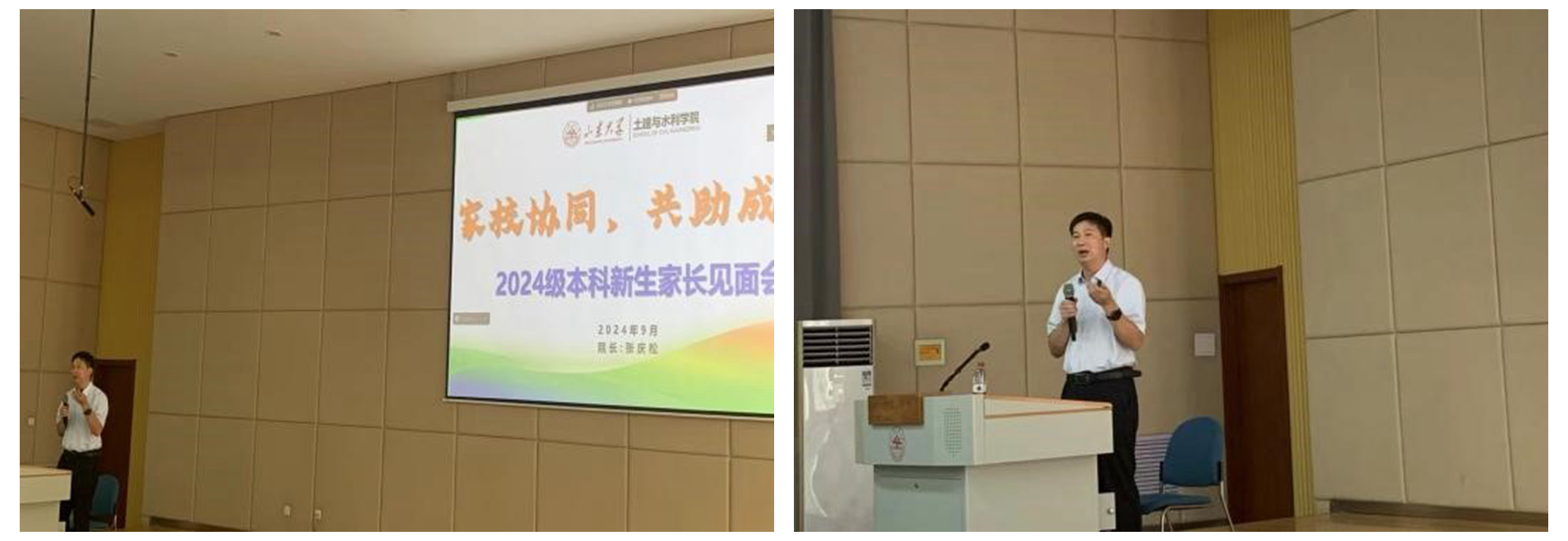 9月2日,Beat365官方网站在兴隆山校区讲学堂201举办本科新生家长见面会。新生家长见面会在兴隆山校区讲学堂201召开。院长张庆松、党委书记刘斌做主题报告。党委副书记王超主持会议。