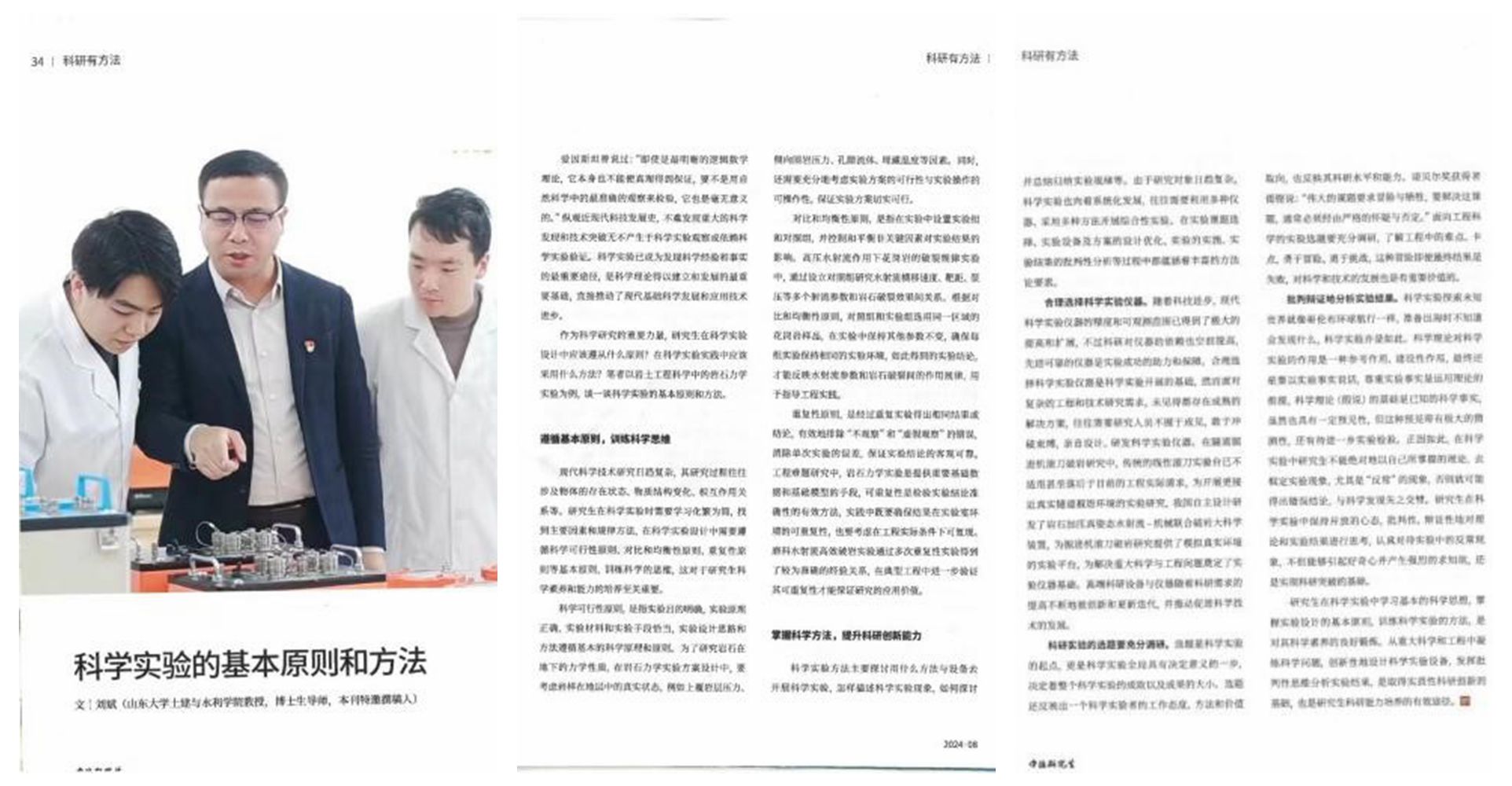 《中国研究生》第8期刊发Beat365官方网站党委书记刘斌署名文章《科学实验的基本原则和方法》,全文如下:
