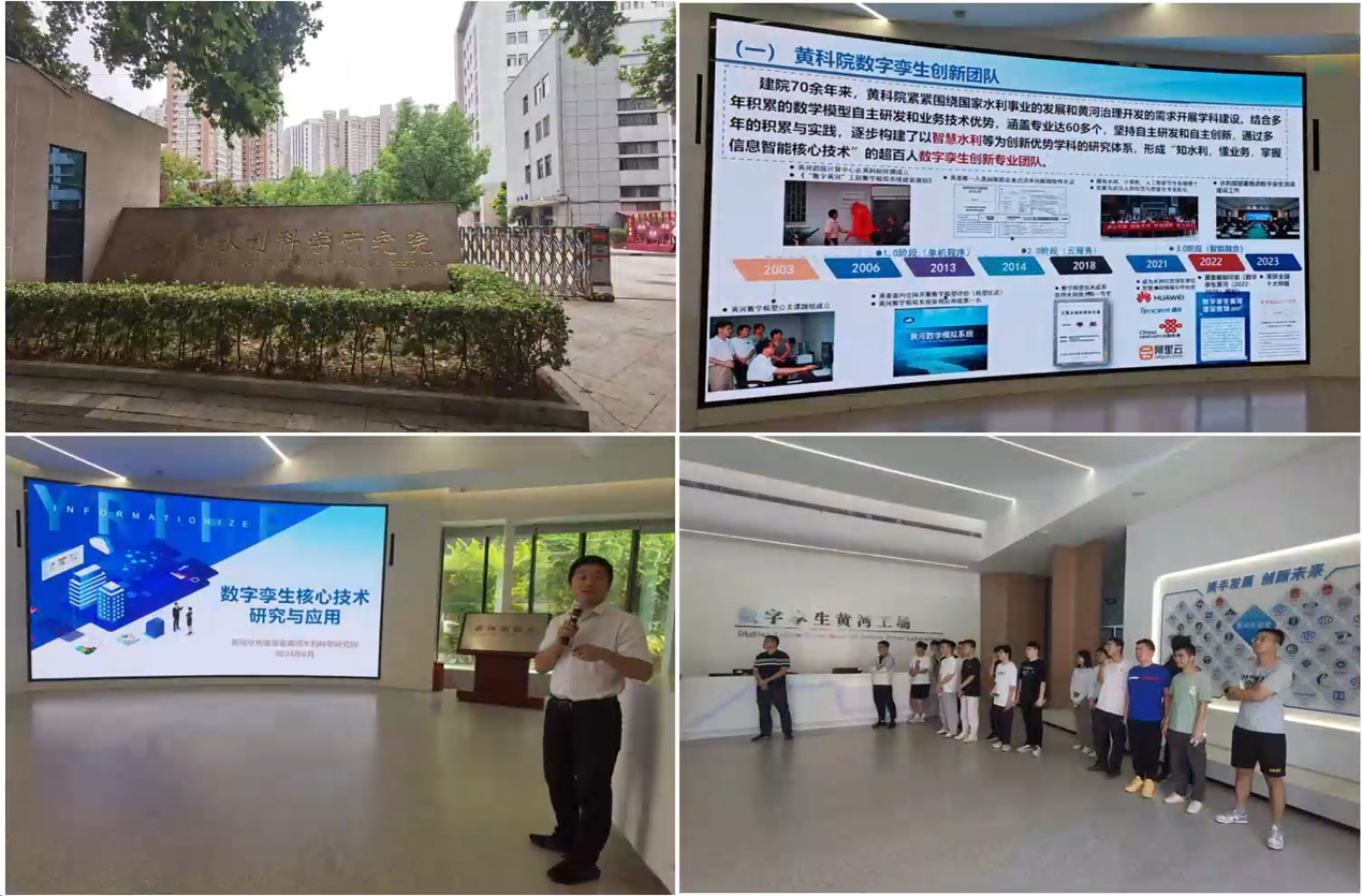 结束模型黄河基地参观后,大家前往了第四站黄河水利科学研究院参观数字孪生黄河工厂。通过工作人员的介绍了近年来黄科院在水利数字孪生技术开发和应用方面取得的系列科技成果,同学们了解到模型黄河之外数字黄河的重要性,既开阔了同学们的视野,也激励同学们在未来的学习和工作中要学会使用人工智能和机器学习技术为专业赋能。
