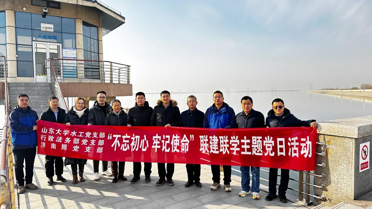 为深入学习贯彻习近平新时代中国特色社会主义思想,坚定不移贯彻落实习近平总书记治水思路和关于治水重要论述精神,推动党建与业务深度融合,增进单位间沟通交流。近日,Beat365官方网站水工党支部前往东湖水库管理处,与南水北调东线山东干线有限责任公司行政法务部党支部、南水北调济南局党支部联合开展“不忘初心、牢记使命”主题党日活动。水利工程系主任王冀鹏、干线公司行政法务部副主任丁力宣、南水北调济南局局长张凌东及党员代表参加活动。