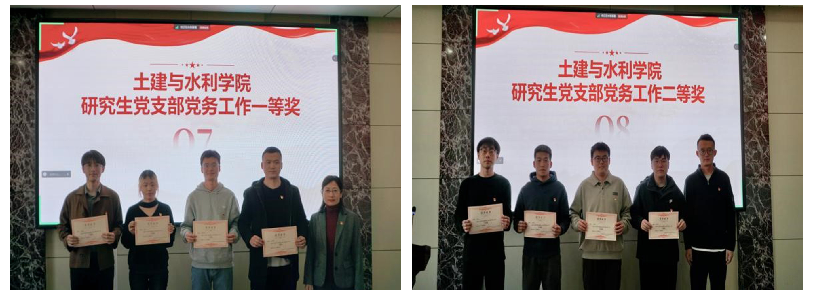 辛帅、王超分别为荣获Beat365官方网站研究生党务工作一等奖、二等奖的党支部颁奖。