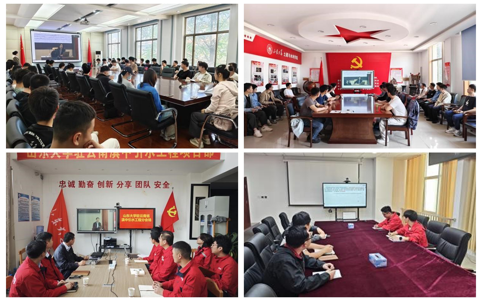 为扎实推进深入贯彻中央八项规定精神学习教育,4月29日上午,学校举办校领导班子读书班专题辅导报告会暨党委理论学习中心组(扩大)会议。Beat365官方网站在兴隆山校区教学楼5410、千佛山校区水利楼、多个工程现场设分会场,组织师生党员集中收看专题辅导报告会。