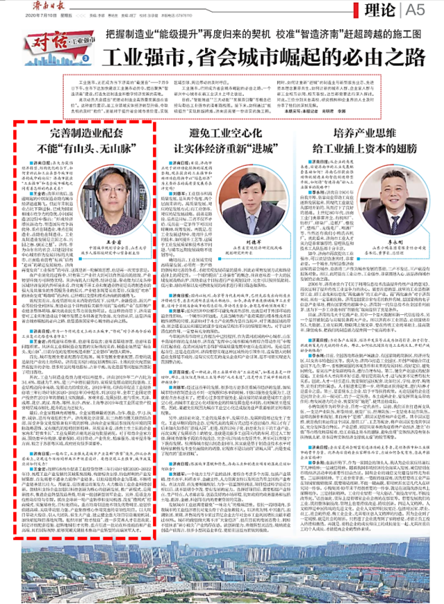 2020年7月8日建筑学系支部书记、城乡人居环境研究中心常务副主任王金岩,接受了《济南日报》记者肖明君的专访。围绕济南“工业强市19条”、“智造济南”等问题从理论、实践、营商环境、人才引进等方面,向济南市建言献策。