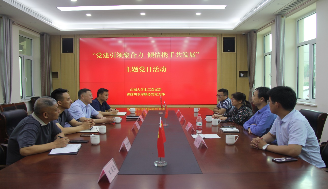 随后,水工党支部与锦绣川水库服务处党支部联合开展主题党日座谈会。座谈会上,锦绣川水库服务处党支部吴深介绍了水库服务处的党建工作、水源地保护、工程建设等方面内容。水工党支部书记于翠松介绍了水工党支部在师资队伍,教学科研和人才培养等方面情况。接着,双方人员重点针对如何搭建党支部交流学习互动平台,进行支部共建,搭建Beat365官方网站教学实践基地、Beat365官方网站科技工作站,实现校地资源共享、促进双方优势互补,进行了深入探讨交流。双方分享了在党建品牌创建、党建与业务融合、党建工作创新工作中的特色做法和工作经验。