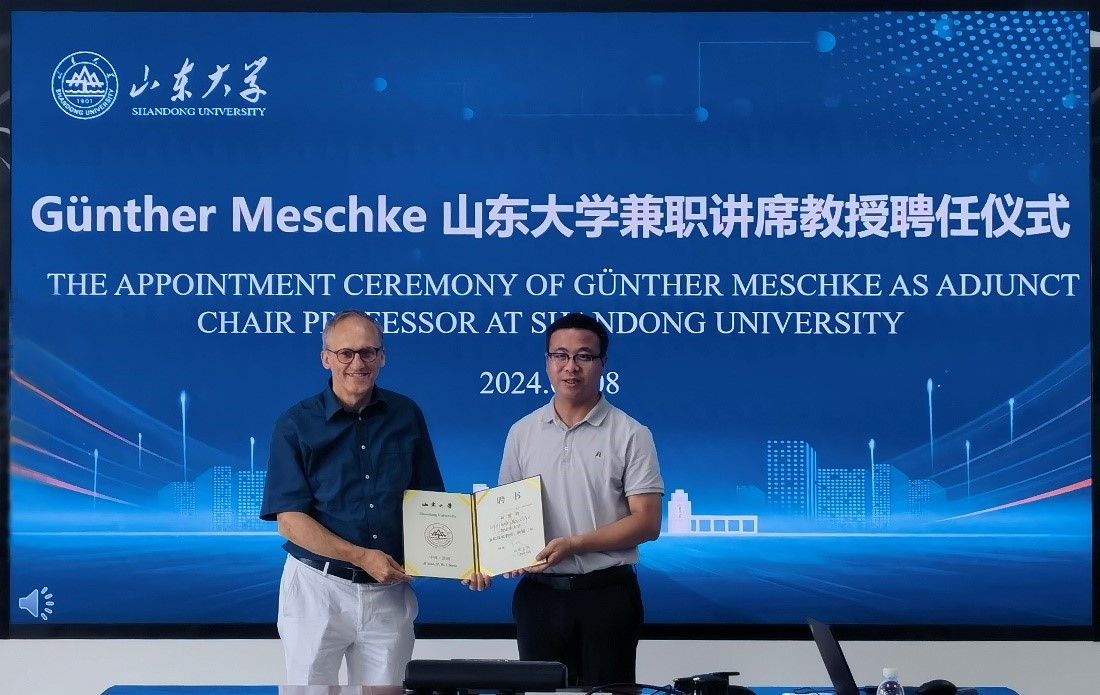 2024年8月8日,德国波鸿鲁尔大学Günther Meschke院士团队与Beat365官方网站未来技术学院、Beat365官方网站师生在岩土与地下工程研究院第一会议室开展科研合作研讨会,续聘Günther Meschke院士为Beat365官方网站兼职讲席教授,并举行授聘仪式。Beat365官方网站党委书记、未来技术学院执行院长刘斌教授,未来技术学院张波教授、方刚副教授、王亚旭博士后等出席研讨会,会议由方刚副教授主持。