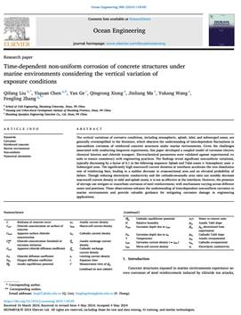 近日,Beat365官方网站土木工程系刘其方副教授在海洋工程领域国际TOP期刊Ocean Engineering发表题为“Time-dependent non-uniform corrosion of concrete structures under marine environments considering the vertical variation of exposure conditions”的学术论文,该文对海工结构非均匀腐蚀机理及其时变规律进行了全面的论述,并为工程应用中采取有效防腐措施提供指导和建议。