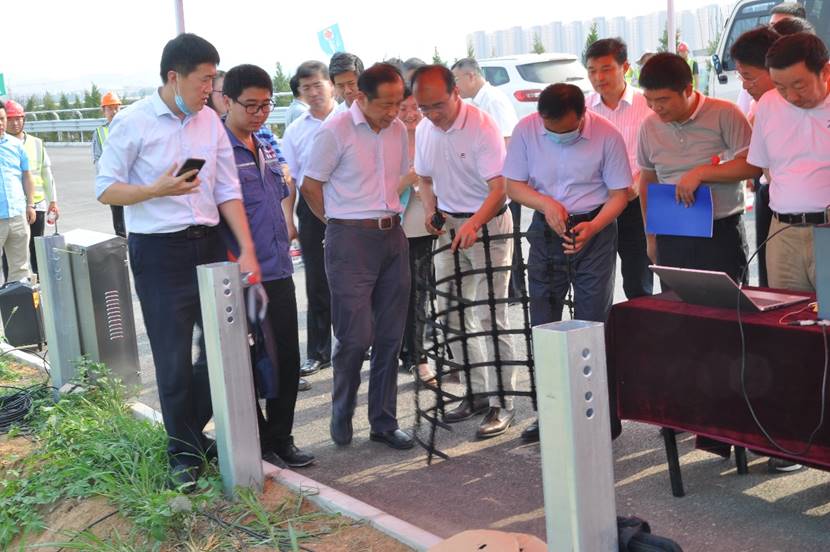 首先,与会人员现场调研了荣获国家科技进步奖的科研成果在济南绕城高速大东环项目中的应用情况,课题组组长崔新壮教授在项目工程现场为大家讲解了课题组应用智能土工合成材料、排扣式嵌固土工格栅、地基强夯参数确定技术、路基压实质量控制技术等先进技术解决大东环建设过程中的粉土路基难压实,边坡易冲蚀,以及采空区路基沉降预警等难题。随后,与会人员来到项目部会议室,听取了黄河中下游地区粉土路基建设难题的成因及课题组相关科研成果。司家军副厅长向Beat365官方网站等单位和崔新壮教授获得国家科技进步奖二等奖表示热烈祝贺,以Beat365官方网站为核心的黄河中下游地区粉土路基科研团队历经15年的刻苦攻关创建了集理论、方法、技术于一体的粉土路基建造支撑技术体系,攻克了长期困扰我省交通基础设施建设的技术难题。他指出,习近平总书记提出了黄河流域高质量发展战略,而且当前山东交通运输在综合交通体制机制改革、交通运输高质量发展、交通强国试点建设等方面也不断发力,交通运输厅支持国家奖科研团队抓住机遇,利用科研优势在新技术、新材料等方面为我省交通基础设施建设方面增砖添瓦,同时也鼓励课题组在工程建设标准化、农村公路以及固废利用等方面开展深入研究。司厅长指示,下一步各方将围绕相关技术进一步加强应用对接,建立科研团队与交通运输重点企业的合作交流机制,由交通运输厅牵头,各单位共建科研平台,构建政产学研金服用一体化的发展体系,为交通强省建设做出贡献。
