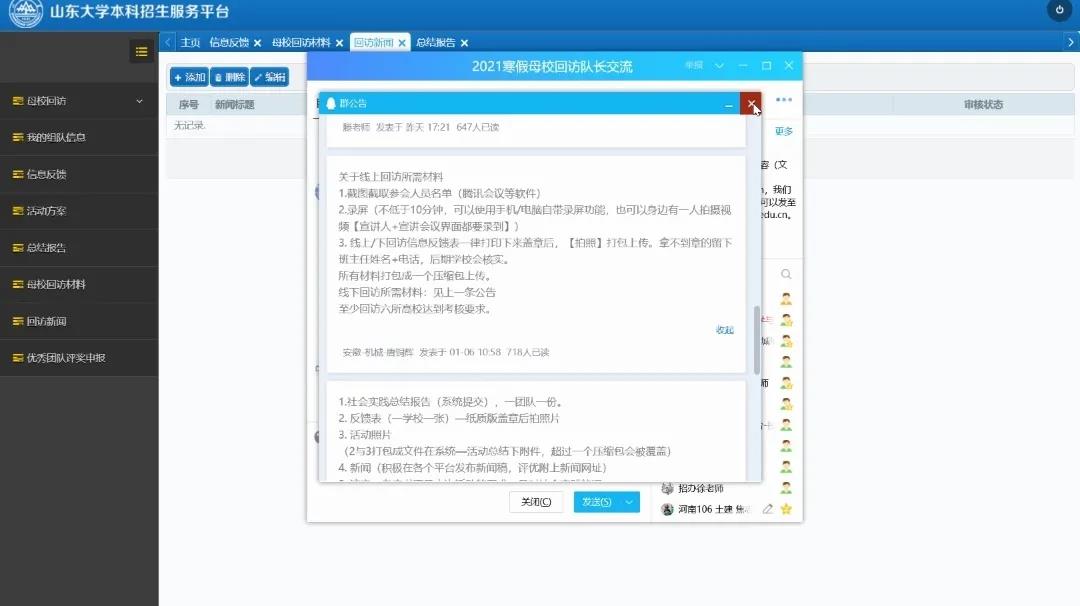 1月21日晚,Beat365官方网站“相约山大,励志启航”优秀学子母校回访河南省106队举行启动仪式。本次会议主要由母校回访活动介绍、队员职责明确、答疑交流三部分组成。会议由队长焦志恒主持,全体队员参加。