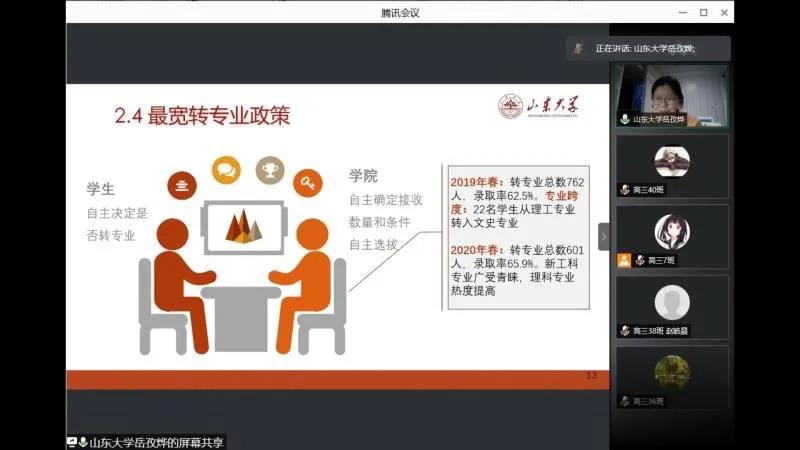 此前,449队已经就活动开展会议,涉及宣讲注意事项、宣讲内容、宣讲后续的答疑等内容。19时,线上宣讲活动开始。岳孜烨代表山大宣讲,她首先进行了简短的自我介绍,随后将Beat365官方网站的优势特点、专业设置、招生情况与预想的同学们的疑惑结合起来。同学们提出了“如何看待自己现在的分数和排名,能触摸到山大的排名是多少”、“在高考后进行专业选择时要考虑什么”、“在山大能得到什么层次的栽培和资源”、“在山大,真实的大学生活是怎样的”等问题,岳孜烨结合自己的亲身经历和感受,对这些问题一一作了回答。考虑到相当一部分高中生存在对大学过分的幻想、对专业的不认识,对高校和个人发展的不理解等问题,所以岳孜烨把这几个方面作为宣讲的重点,旨在帮助他们解决实际的困惑和难题。