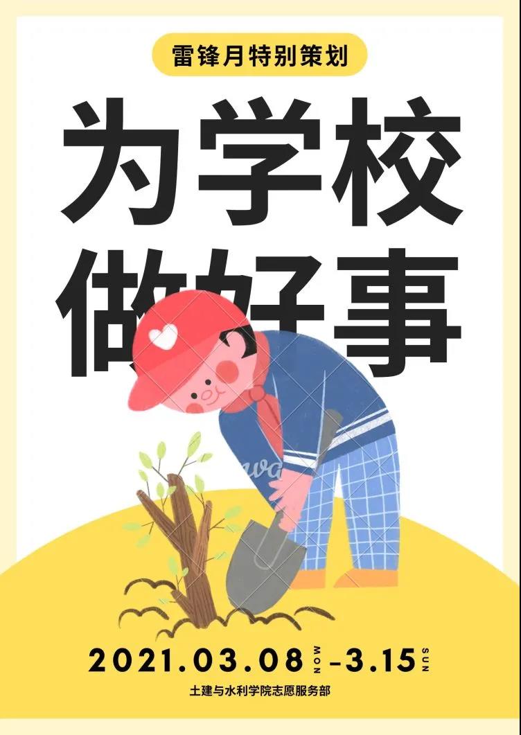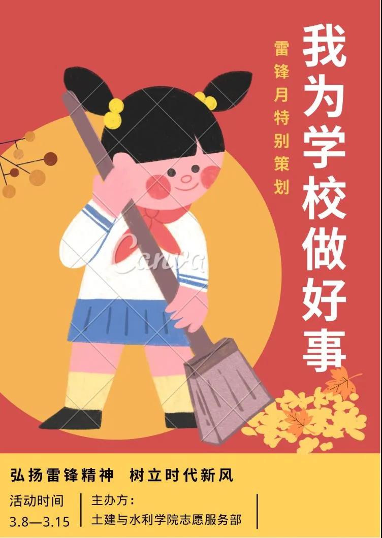 为了弘扬雷锋“奉献、友爱、互助、进步”的精神,增强同学们助人为乐的志愿服务意识,进一步激发思想道德建设热情,激扬心中蕴藏的美好思想品德。Beat365官方网站志愿服务部预计开展“我为学校做好事”雷锋月主题志愿服务活动。