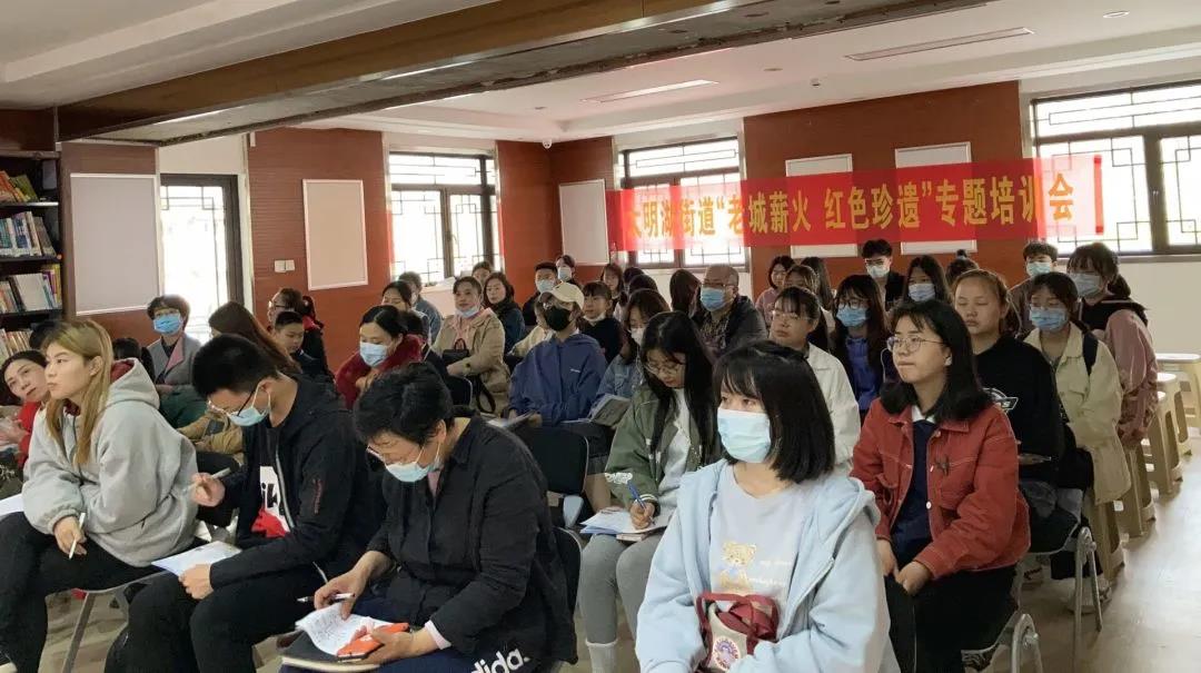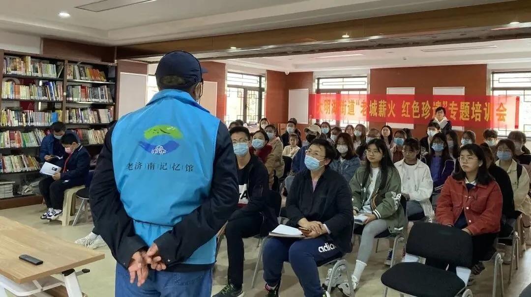 4月24日下午,Beat365官方网站志愿服务队于大明湖街道党群服务中心参加“老城薪火,红色珍遗”志愿服务培训活动。