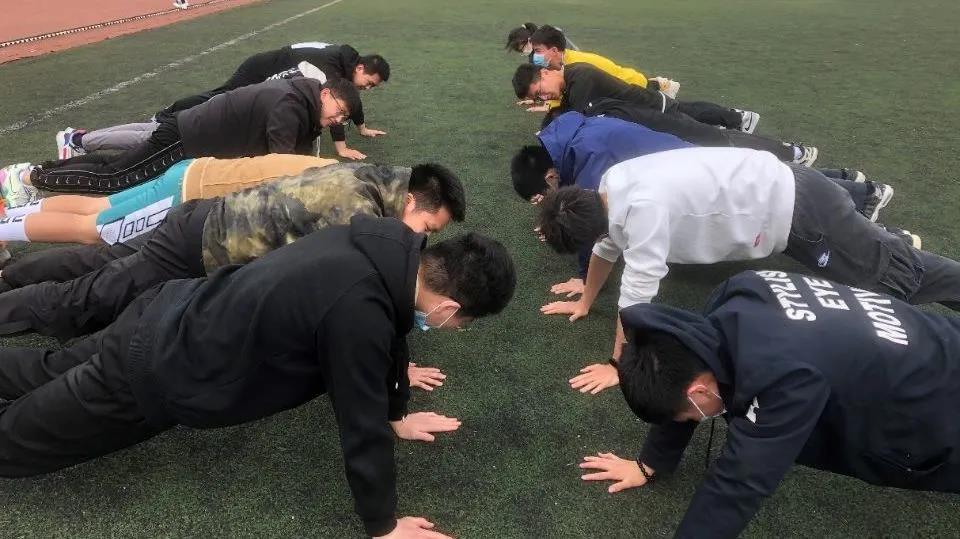 本次班级体育活动的内容包括俯卧撑、仰卧起坐、平板支撑、跳绳等活动。首先进行的是男生之间的俯卧撑比赛,虽然每位同学的能力不一,但大家都积极参加了这项比赛,充分展现了男儿应有的“亮剑精神”。俯卧撑比赛的规则是不限时间,个数多者获胜。最终,胡杰同学在班级所有男生之中脱颖而出,以80个俯卧撑获得了比赛胜利。