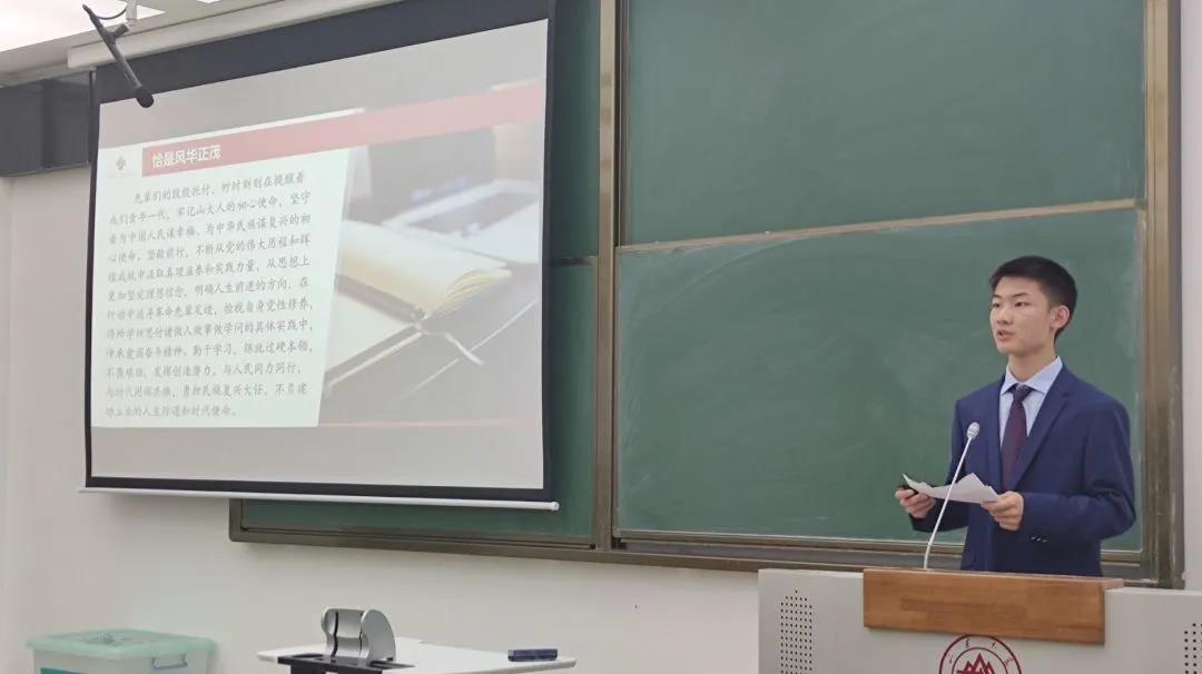 5月16日晚,第二次活动于教学楼3407举行,首先汤昊天以党史为主题,他详细介绍了党史进程,表示“欲知大道,必先为史”,在党的百年历程中汲取前进的智慧和力量,充分用好山大红色资源切实感受百年艰辛历程和巨大变化。接着胡耀宇以“回眸抗战,引领前行”为主题,他结合党史,讲述抗战故事,“愿以寸心寄华夏,且将岁月赠山河”。第三位同学宋金诺由爱引入,她从党史中得出爱的感悟,并引申至爱与奋斗的家国深情之上。第四位同学施淑垚向我们介绍了中国刺绣,并由自身经历感受呼吁大家走进刺绣,拥抱刺绣。第五位同学王锦鹏聚焦时代精神引领,结合历史向我们讲述了抗美援朝精神。