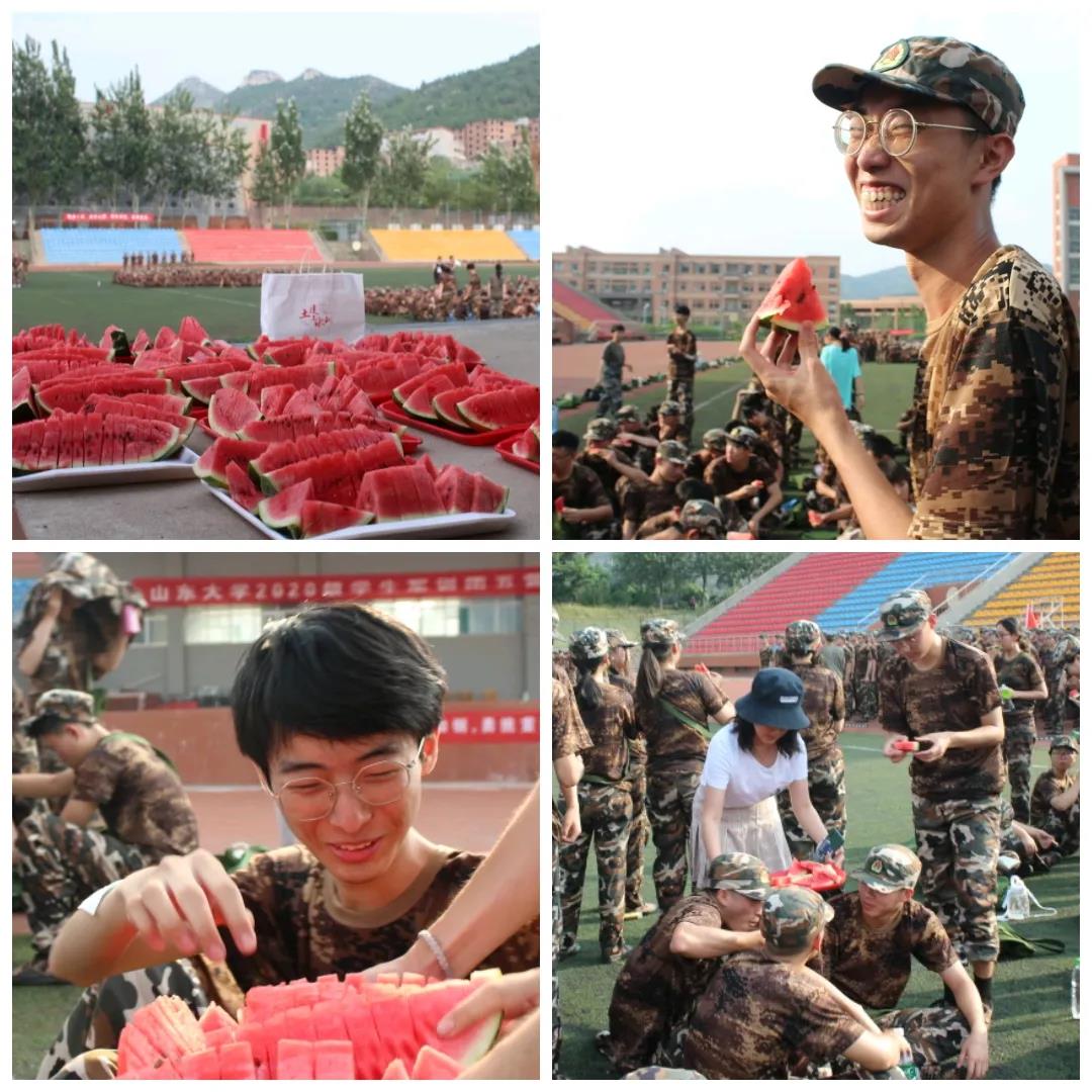 为保证同学们的身体健康,Beat365官方网站贴心为军训成员准备花露水、风油精、藿香正气水等防暑物资,并分发绿豆汤、西瓜进行解暑。当学生们拿到西瓜,炎热的风雨操场上瞬间清凉起来,他们的笑声传遍兴隆山。在休息时间内,同学们拉练军歌,声音洪亮,气势豪迈,展现出的满腔热血与昂扬斗志。