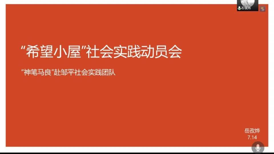 7月14日晚八点,Beat365官方网站“神笔马良”赴邹平社会实践团队在线上召开社会实践活动动员会。会议由队长Beat365官方网站学生岳孜烨主持,全体团队成员参加。