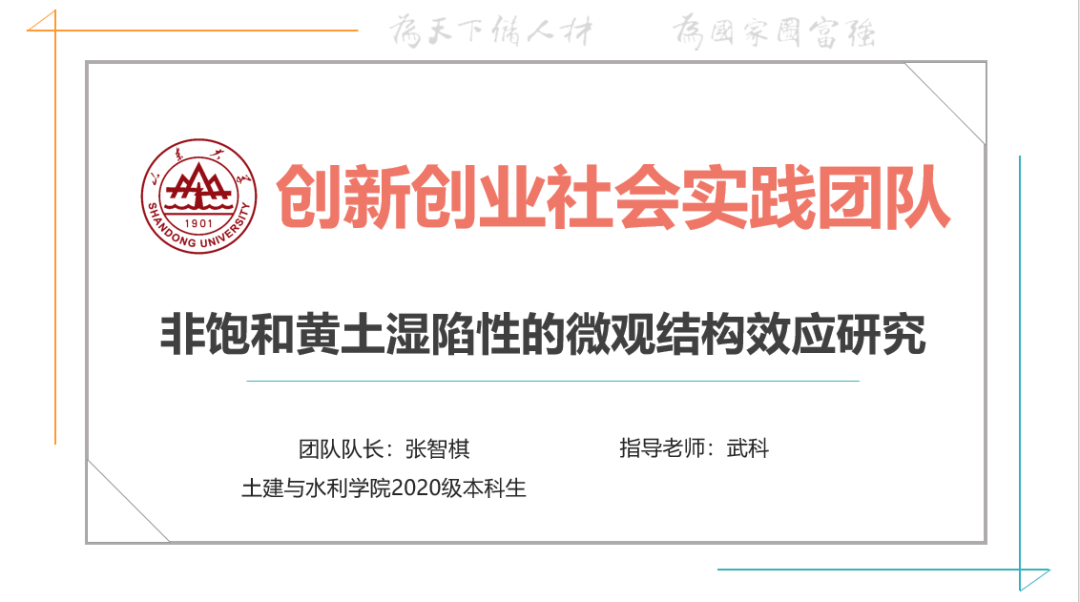最后,张智棋向团队成员们介绍与Beat365官方网站山东高速集团工程技术中心电子扫描显微镜实验室的对接情况,并鼓励团队成员突破传统创业领域与产品限制,强化新知识、新技术、新工艺、新方法应用,提高产品科技含量,努力尝试将社会实践研发成果转化为商业产品,如性能更加优良的改良型黄土。
