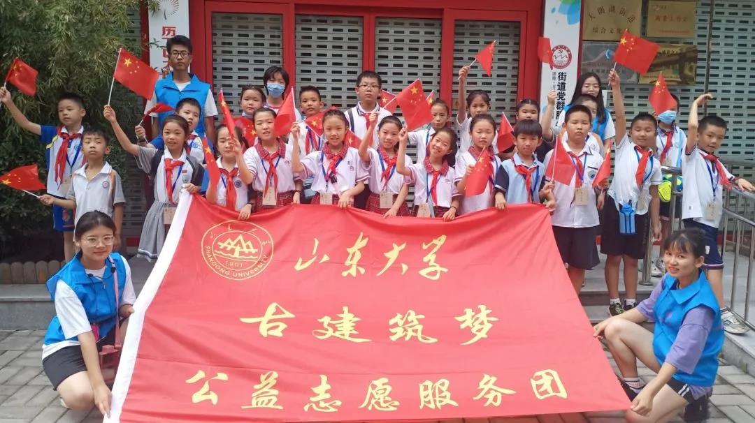 7月18日上午9点,“古建筑梦”实践志愿团同济南市博物馆工作人员一同举办“文博小使者”暑期红色研学活动。活动从雄壮的解放阁开始,一路沿着红色人物纪念地前进,用角色扮演的形式,加深孩子们对党、革命和共产主义的理解,激发他们对于党史的热忱。
