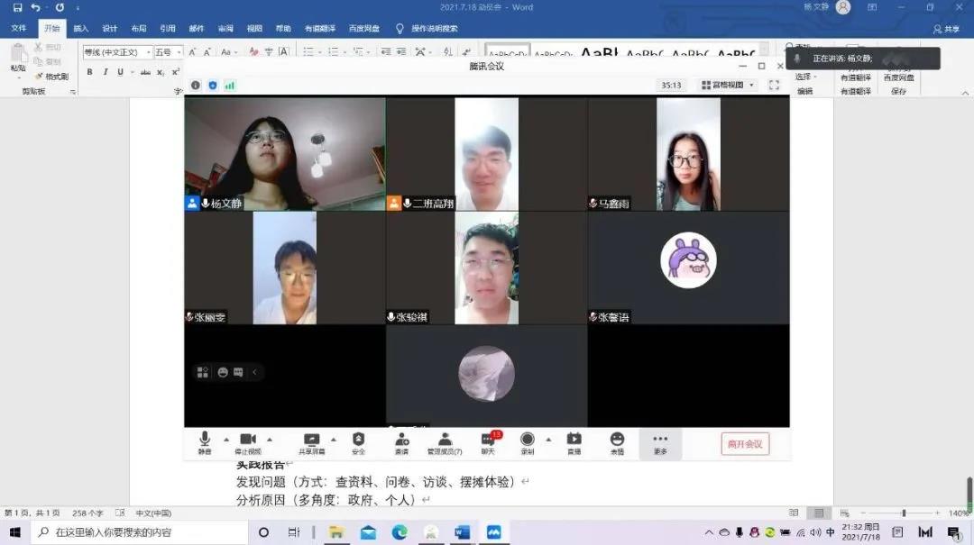 会议伊始,杨文静对本次社会实践进行了开题陈述,包括本次社会实践的目的、意义、希望达成的目标等。她希望在本次社会实践中,队员们能够明确地摊经济一年来的变化以及发展现状,并通过亲身体验摆摊、查阅资料、走访等方式,全方位剖析“地摊经济”目前存在的一些问题,提出切实可行的建议与措施。