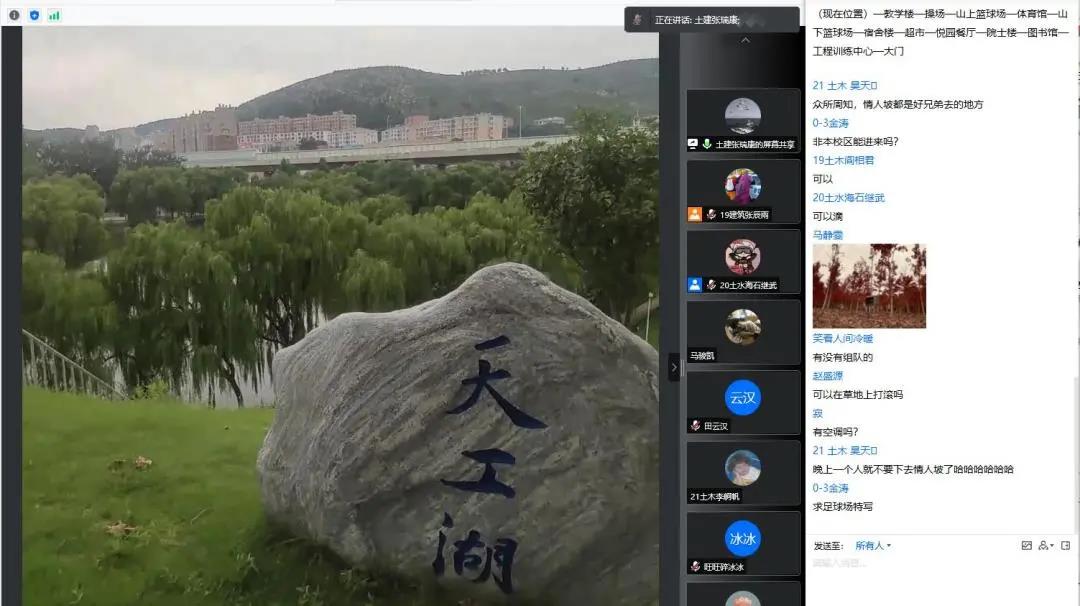 同时,在云游兴隆山过程中设置了答疑环节,经验丰富的学长学姐随时待命,向2021级新生解答大家普遍具有的疑惑。有关入学后学习生活方面,新生们向学长学姐们询问,在有关军训、入学用品、团组织关系等方面,学长学姐依据相关流程耐心解答,提问气氛良好。
