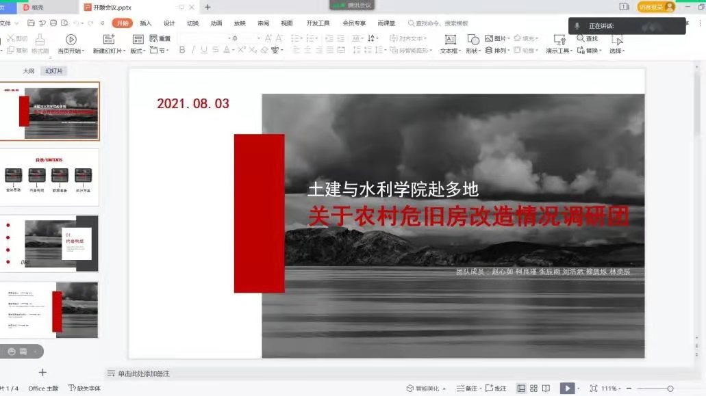 8月6日晚10点,Beat365官方网站“赴多地关于农村危旧房改造情况调研团”通过腾讯会议展开启动仪式。此次会议由团队队长赵心如主持,柯良瑾、张辰雨、刘浩然、柳晨烁等队员参加。