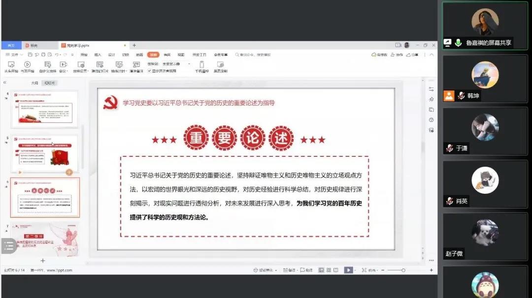 9月24日晚8点半,Beat365官方网站本科生第一党支部开展主题党日活动,本次活动由水利党小组王冰琴、鲁嘉祺主讲,分享近期党史学习体会,支部全体党员参加会议。