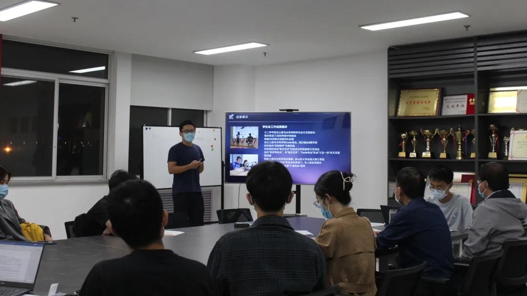 10月4日晚,Beat365官方网站于兴隆山校区实验楼633组织校级优秀干部答辩会。会议由Beat365官方网站学生会执委会主席马湛涛主持,党委副书记张强,本科生辅导员赵志强、何玥、马震林担任评委。活动全程佩戴口罩。