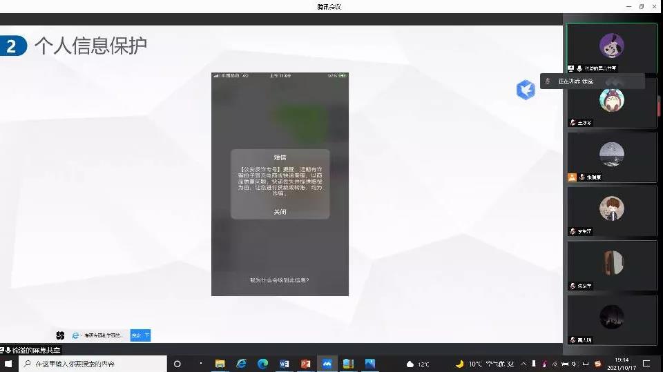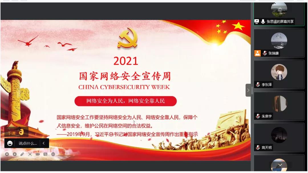 为贯彻落实中央关于网络安全和信息化的战略部署,加强党员同志树立网络安全自我保护意识,提高网络安全防范技能。10月17日晚,Beat365官方网站本科生第一党支部于线上开展“网络安全为人民,网络安全靠人民”主题党日活动。本次活动由张瑞康主持,张思遥、高天明、徐溢、张晋分别从不同角度分享近期学习体会,支部全体党员参加活动。