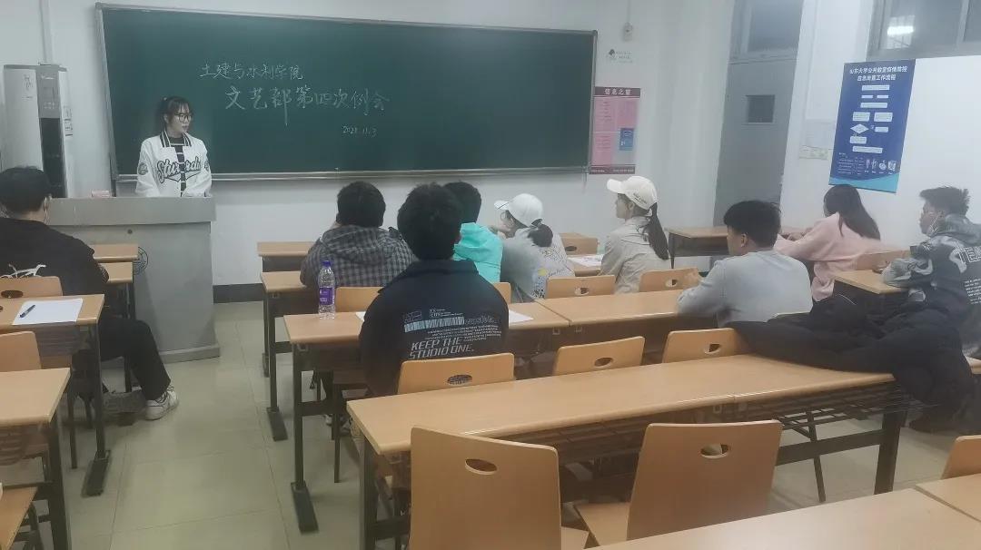 11月3日晚八时,Beat365官方网站学生组织文艺部于兴隆山校区教学楼1401开展了第四次例行部门研讨会。本次会议由部长马静雯主持进行,文艺部全体干事参加。