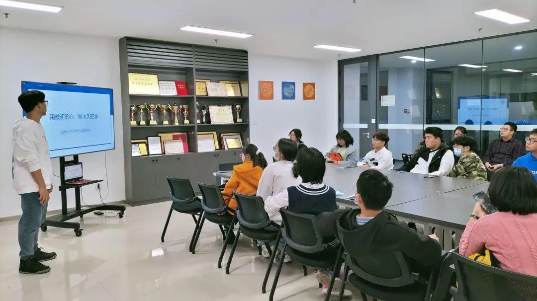 本次会议首先进行了第十二届手拉手志愿服务大赛启动仪式。本届主题是:“手牵手递温情,心连心续青志”。石继武从赛制,赛程,规则,展示四个环节向各队长详细全面地介绍了本次活动流程。其中,今年给定的主题有“讴歌百年党恩,传承先辈精魂”,“用心守护,共筑未来”,“心怀感恩,情暖冬日”,各队也可以自定主题开展活动。