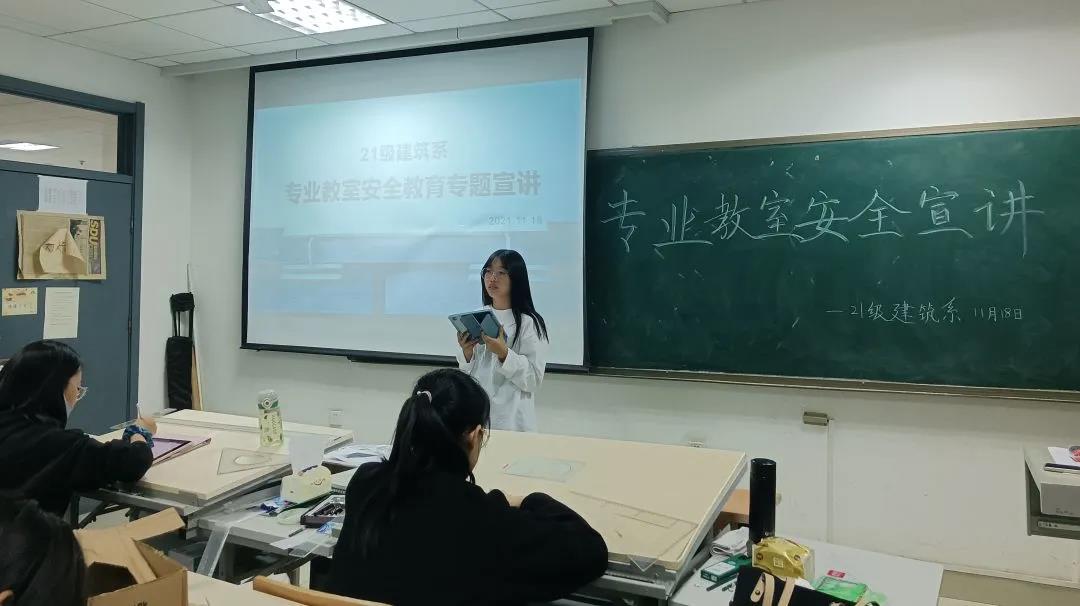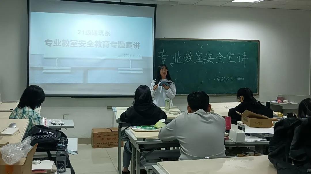 为了增强同学们的安全意识,保证专业教室的安全使用,11月18日晚八时,Beat365官方网站2021级建筑学系一班和二班于实验楼专业教室共同开展专业教室安全宣讲,本次宣讲由两班班长组织,2021级建筑学系全体同学参加。