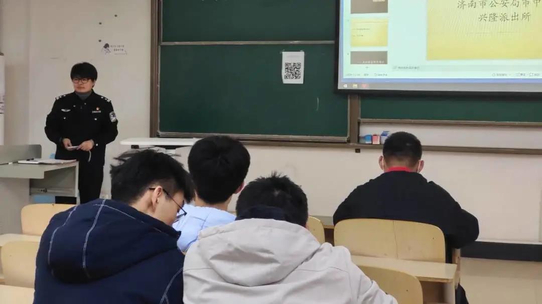 12月9日,Beat365官方网站于兴隆山校区教学楼开展安全教育讲座系列之反诈骗宣传。本次反诈骗宣讲由济南市公安局市中分局兴隆派出所民警主讲,Beat365官方网站部分同学参加。
