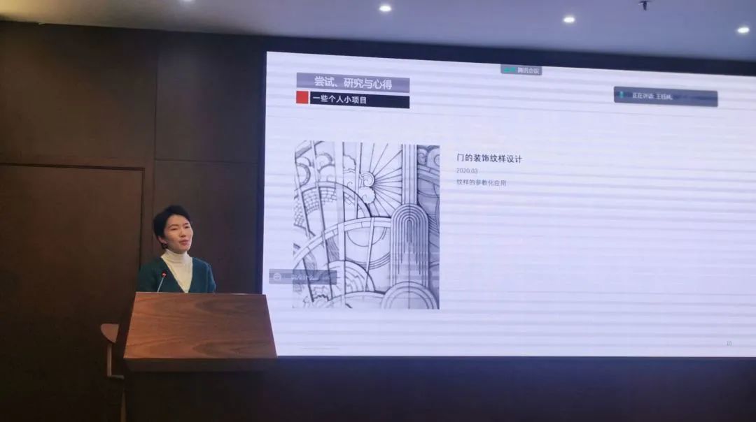 分享会伊始,王钰林向大家介绍了自己的一些研究尝试,包括碳纤维家具制作等个人小项目和机械臂大尺度3D打印生产和金属打印节点优化的实习大项目。她也分享了自己刊登在《2021全国建筑院系建筑数字技术教学与研究学术研讨会论文集》的毕业论文——《展厅建造中机械臂层叠式3D打印方式的研究》。