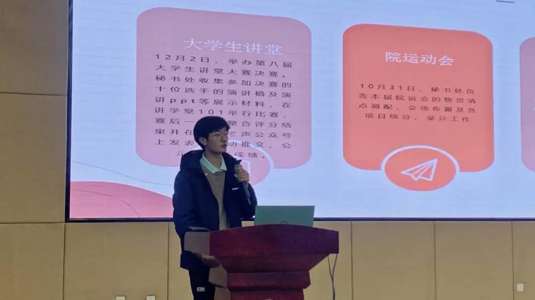 汇报环节,各部门代表依次回顾了本学期工作经历,总结了工作不足,规划了未来工作安排。组织部和社会实践部以短视频的方式,生动展现了半年来的工作风采;传媒部和网编部借助数据展示了学院媒体的运营宣传成果;志愿服务部用一个个精彩的志愿服务活动诠释了“用最初的心、做永久的事”,展现了作为Beat365官方网站“十佳志愿服务组织”的服务风采……一张张照片、一个个数据、一段段视频,凝聚着大家的热情与心血,展现了Beat365官方网站学生会的良好风貌。