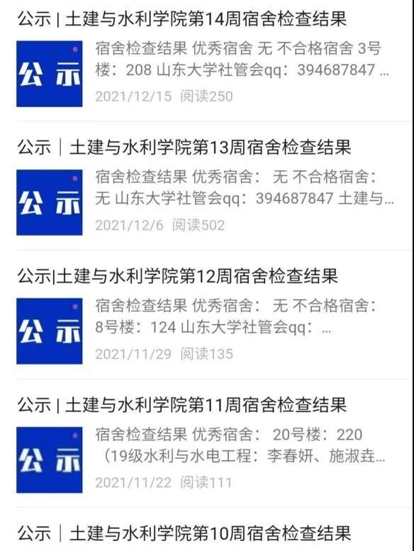 宿舍卫生检查工作是组织部负责的任务之一。本学期起开始采用同学们自查、互查的检查方法,让同学直观地看到优秀宿舍的表现,并全面了解检查标准。在此过程中组织部统筹收集各班级的检查时间,收集并审核各班的检查情况,并解答相关问题,最终整理和公布结果。