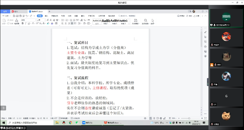 为丰富同学们应对考研复试的经验并为其准备工作指明方向,2月16日晚8时,Beat365官方网站于线上举办土木工程考研复试经验分享会。本次活动邀请到了顺利考研至Beat365官方网站的张秀璇和考研至重庆大学的邸明瑞,2018级土木工程专业同学参与。