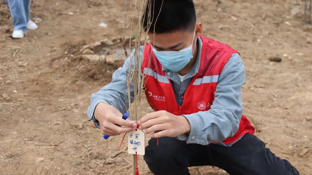 活动最后,同学们纷纷在自己种下的小树苗上留言,许下了对学校对自己最美好的祝福,希望这些小树能够满怀着大家的期许,为校园增添一抹靓丽的色彩。