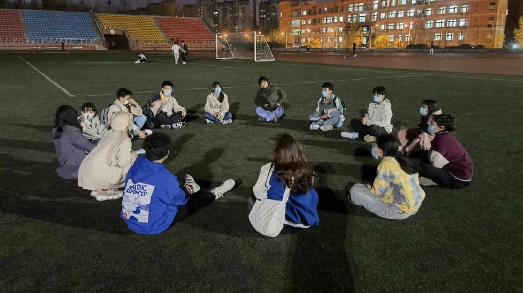 在疫情严重的形式下,同学们分散就坐打开手电筒,像一颗闪耀的星星熠熠生辉。合唱缓解了疫情期间同学们的紧张情绪,丰富了网课学习期间的课余生活。活动结束后,大多同学仍旧依依不舍,在操场上尽情欢唱。