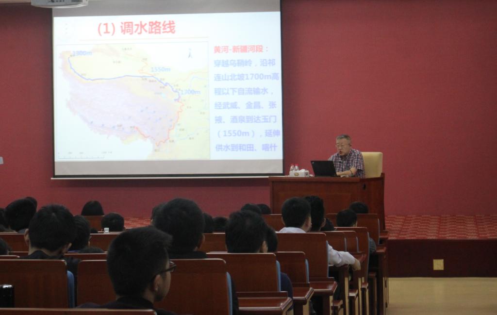 报告开始,王院士首先简要介绍了红旗河工程的基本背景。他指出我国西北地区降水稀少,蒸发强烈,荒漠广布,生态环境十分脆弱,同时也是我国经济社会发展最不平衡最不充分的区域。王院士一直致力于研究从青藏高原“中华水塔”自流到西北地区的调水方案,以破解制约西部崛起的水资源问题。红旗河工程调水高程低于2558m,沿青藏高原东部边缘自流输水,避免了高原调水、高原输水、高原生态破坏和单体超级工程的问题,是经济技术切实可行的全程自流的西部调水方案。