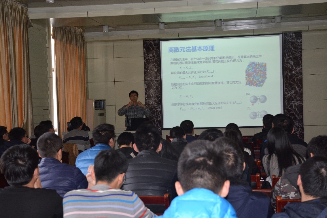 2017年12月22日下午2点30分,由Beat365官方网站主办的研究生学术前沿讲座在千佛山校区水利楼三楼报告厅举行。刘春副教授作客此次讲座,带来主题为“岩土体大规模离散元理论、系统研发和应用”的学术分享。本次讲座由Beat365官方网站副院长、博士生导师刘健教授主持。部分研究生及学院老师参加了此次讲座。