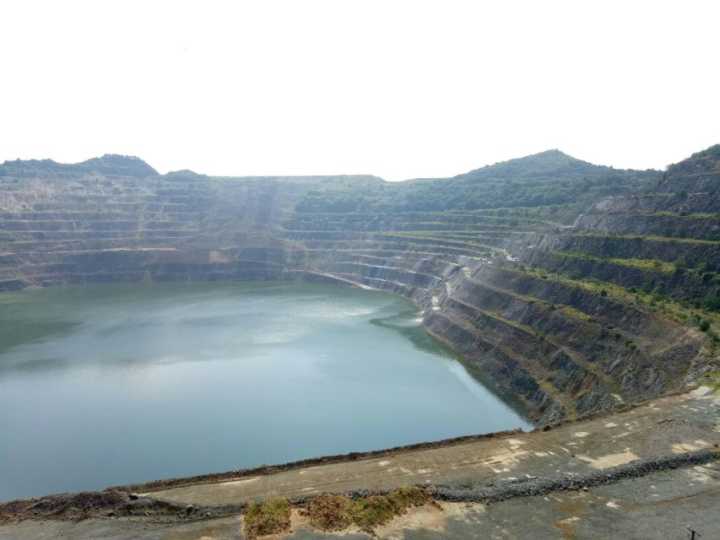 上午八点,调研团队长潘登带领团队队员前往南山矿场管辖下最大的凹山矿场。从百年前的轻微开发到日本侵略时的掠夺式开发再到社会主义发展时期以及改革开放时期为发展经济开发,历经近百年,原本一座百米高的矿山现在已经成为深两百六十余米的大坑。团队了解到,目前矿场停止开挖并非矿石告罄,而是把矿石从底部运上来成本太大,入不敷出,被迫停止开挖。团队发现矿场由于地质原因已经发生部分塌方,存在一定的安全隐患。几公里外的炼钢厂通过管道把炼钢产生的尾矿(主要成分为沙子)排入深坑中,经过自然沉淀的水再处理才可排入长江之中。停止开发的矿场后期通过生态修复将开发成为旅游景点,具体的处理方案也在设计之中。相信在五六年之内会成为一个风景优美的旅游景点。